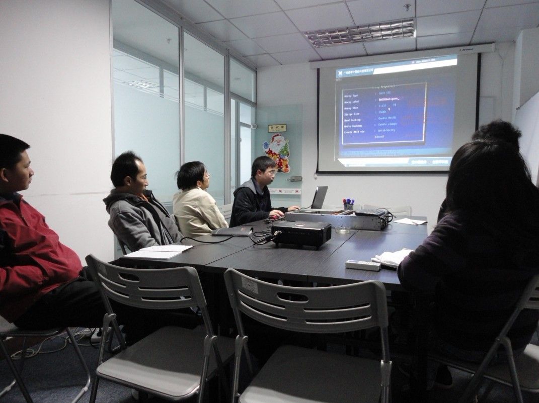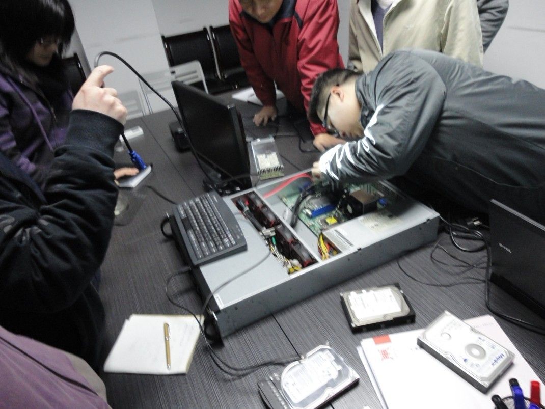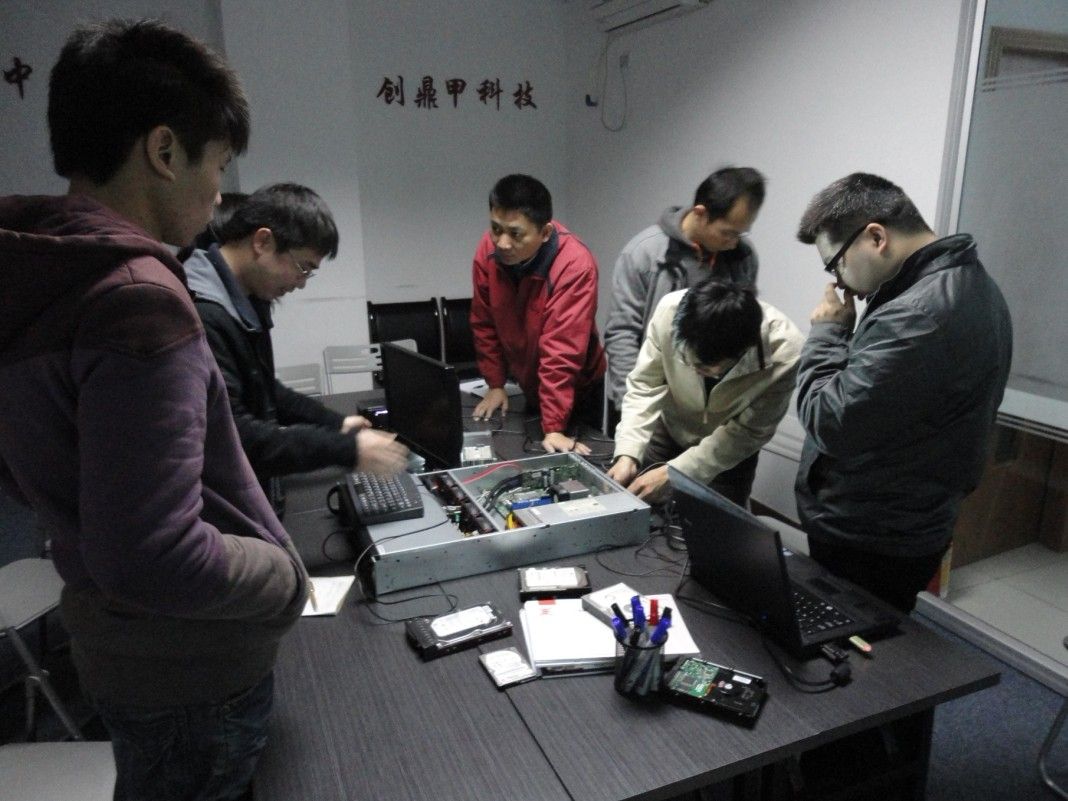 2012年1月6日下午,鼎甲公司组织技术部进行服务器知识培训,培训内容有计算机硬盘、RAID卡、电源等硬件的使用方法,存储服务器知识,RAID阵列的构建,RAID阵列安全监控,Linux环境下的RAID重构等。这次培训理论和实践相结合,现场用了一台真正的存储服务器做实验,技术人员听讲完后亲自动手做实验,技术总监和技术支持在现场指导,大家形成互动,学习气氛浓厚。技术人员在这次培训中获益良多。